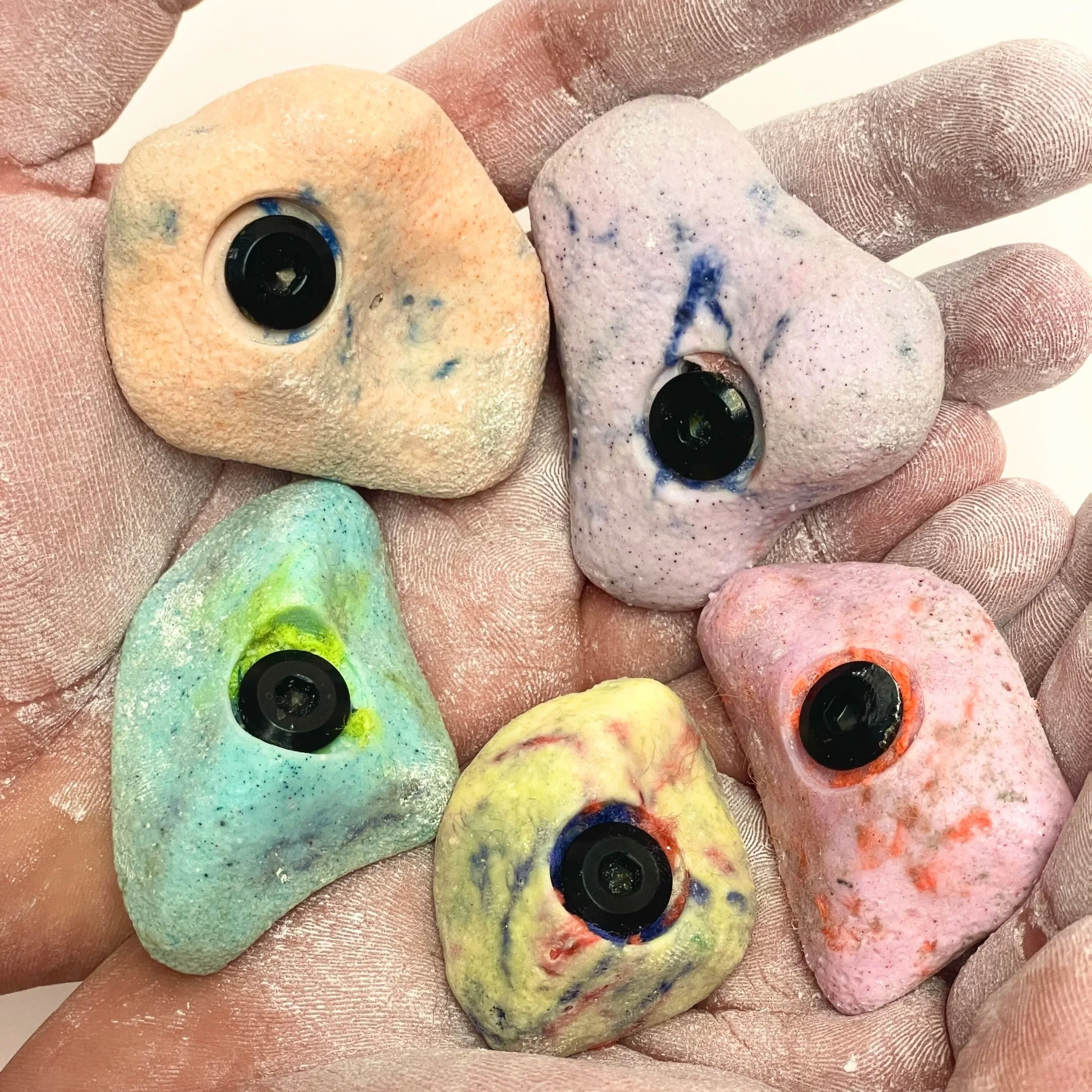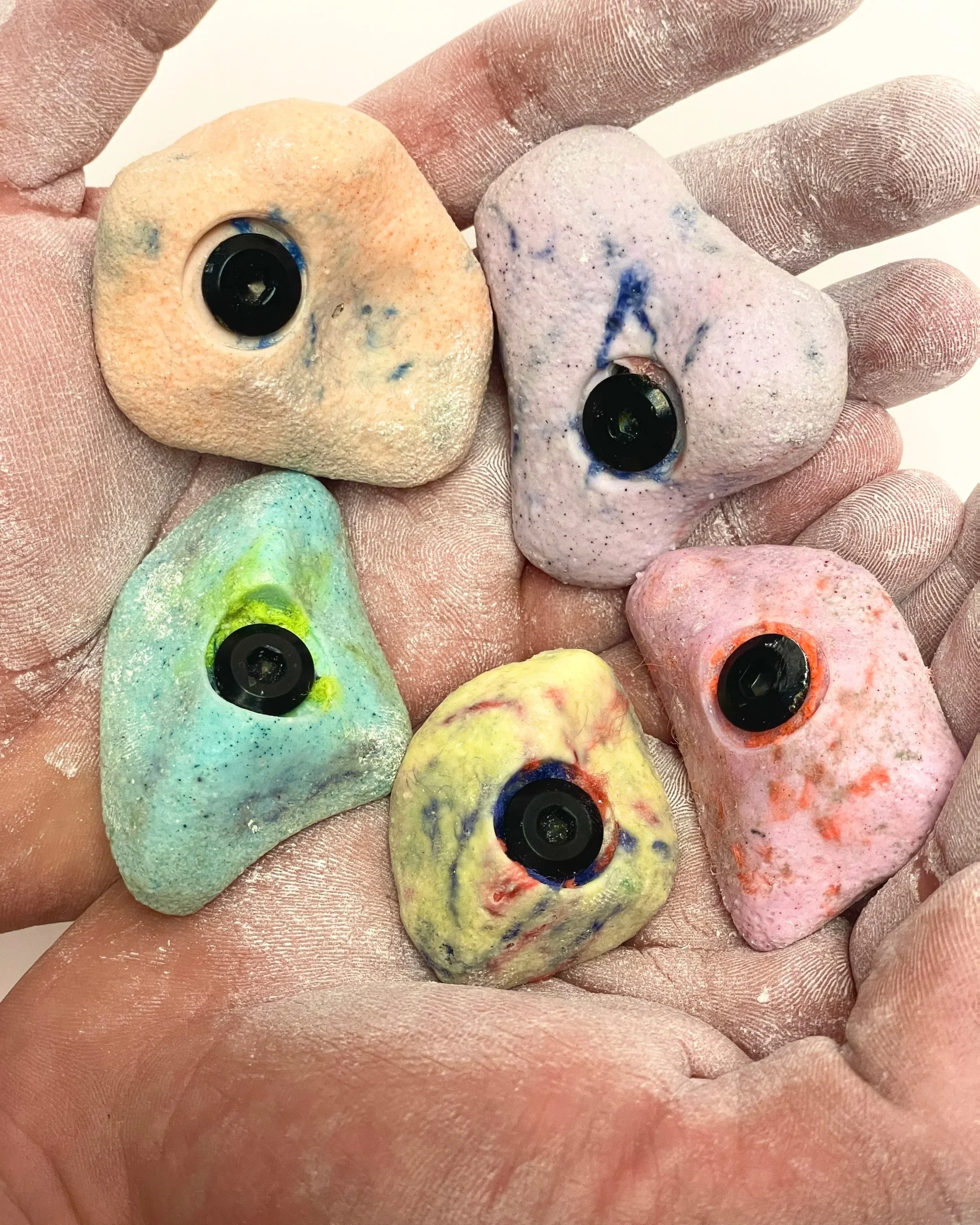 Throughout our iteration process, we carefully analyzed dozens of different climbing holds. We used our findings to authentically incorporate their color palettes, forms, and hardware into our final designs.